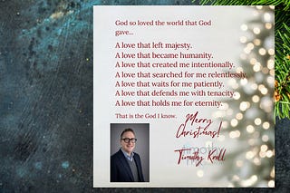 God's love left majesty, became humanity, created us intentionally, searches relentlessly, waits patiently, defends with tenacity and hold for eternity…